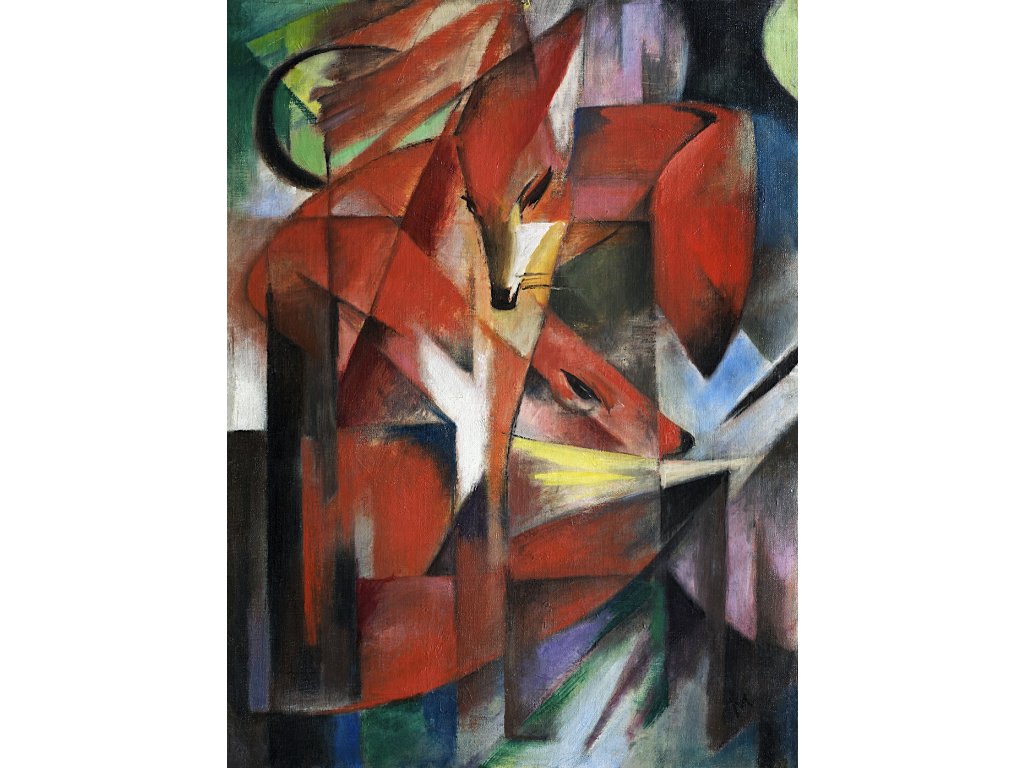 Reprodukce obrazu z roku 1913 od Franze Marca na tvrdém papíře.