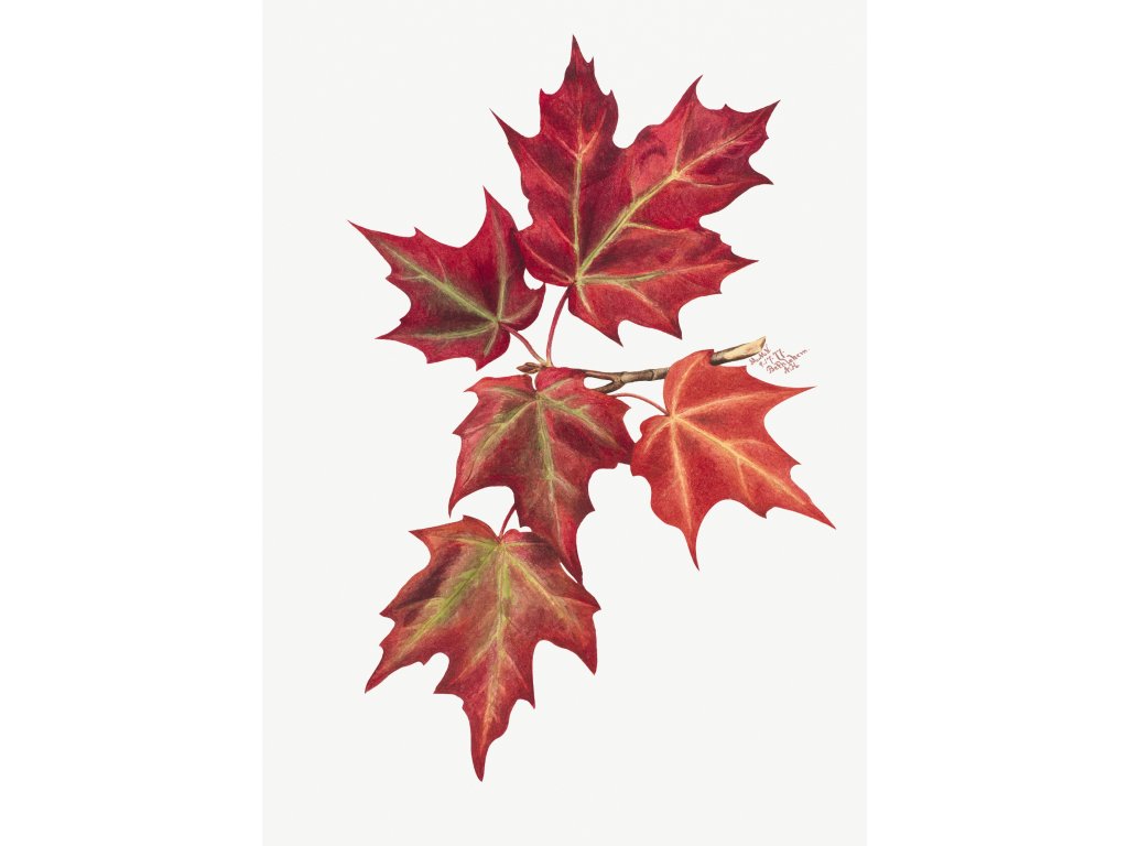 Reprodukce kresby z roku 1877 od Mary Vaux Walcotte na tvrdém papíře.