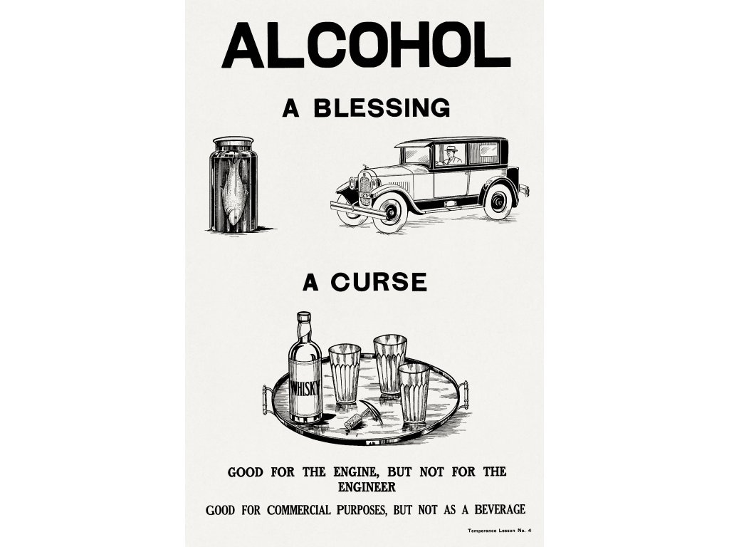 Reprodukce chromolitografie z roku 1912 propagující prohibici. Výtisk je součástí materiálů kanadské organizace Dominion Scientific Temperance Committee, hnutí za abstinenci, jehož cílem bylo omezit alkohol pomocí vzdělávacích materiálů a veřejné propagandy.