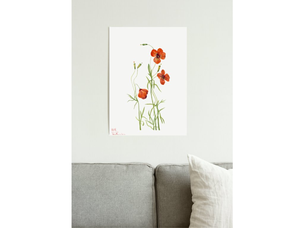 Reprodukce kresby z roku 1926 od Mary Vaux Walcotte, americké malířky - rostliny s názvem wind poppy, česky také větrný mák nebo větrnice.
